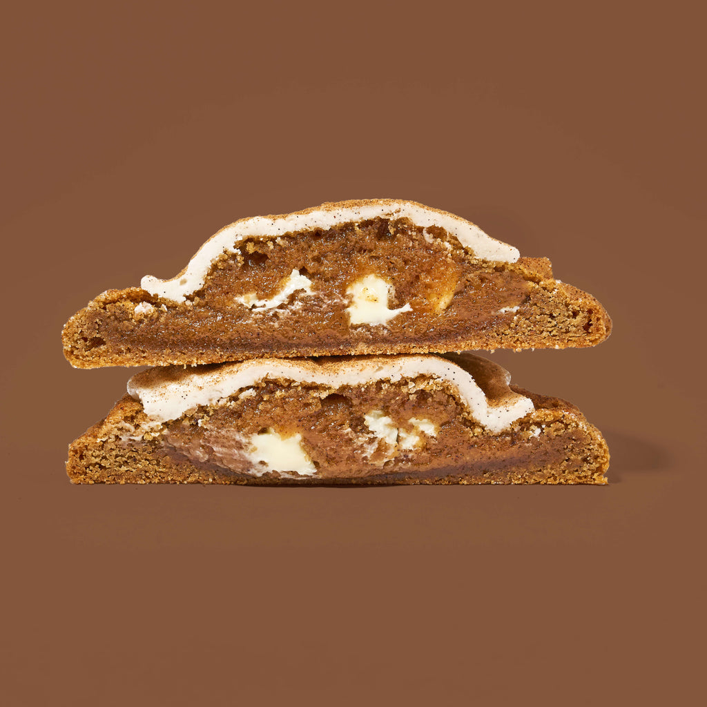 *NEW* for 2025! Chai latte lovers, unite! This cookie is our heavenly take on your favorite fall beverage with warm chai spices, white chocolate chunks and vanilla bean icing dusted with our chai spice blend. Contains NO tea.