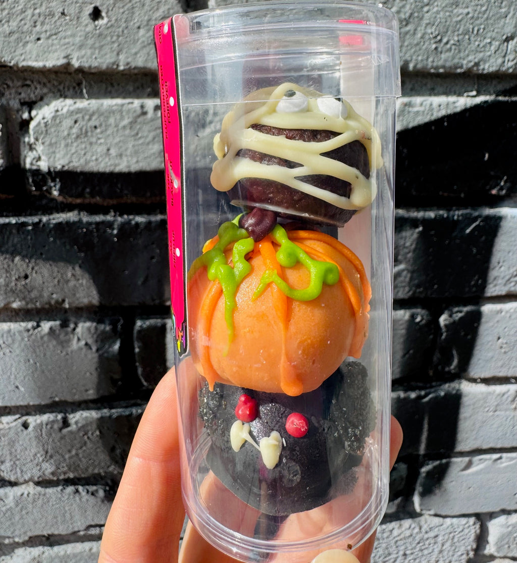 What a treat! Our kid-friendly Halloween Reballs (pronounced "rebels") are rich, 2-bite cookie balls made from our own Crowd Favorite cookies. If sold out here, find them as part of our Happy Hallo-Scream Sampler.